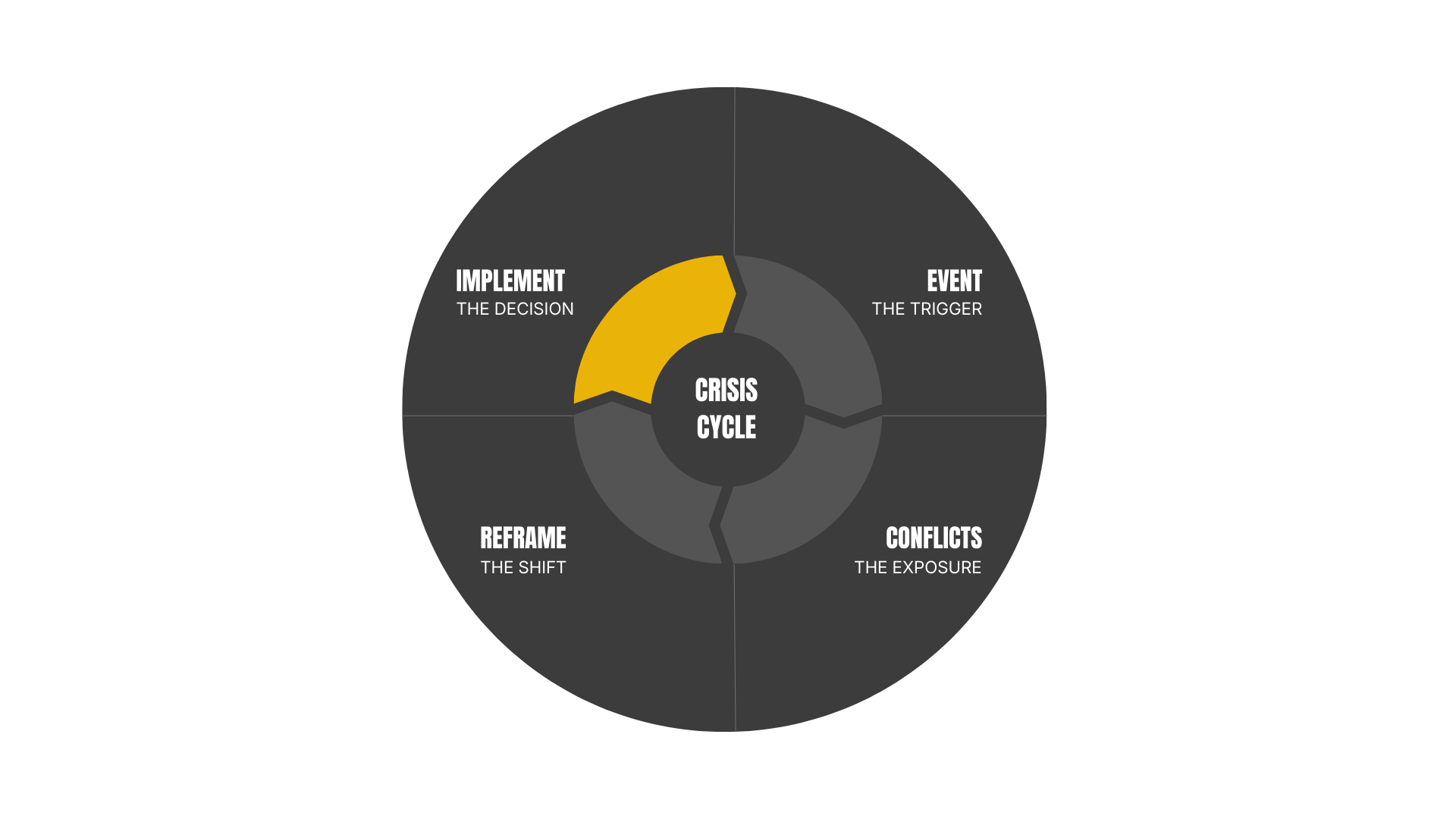 The Crisis Cycle is a 4 phase framework for navigating personal crisis. It shows how repeated beliefs create recurring patterns, and how conscious recognition, insight, and reframing can guide you toward transformation.